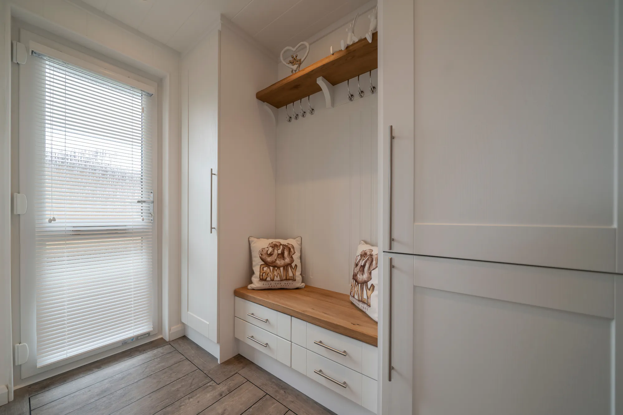 - Utility boot room with storage, coat hooks and built-in washer dryer