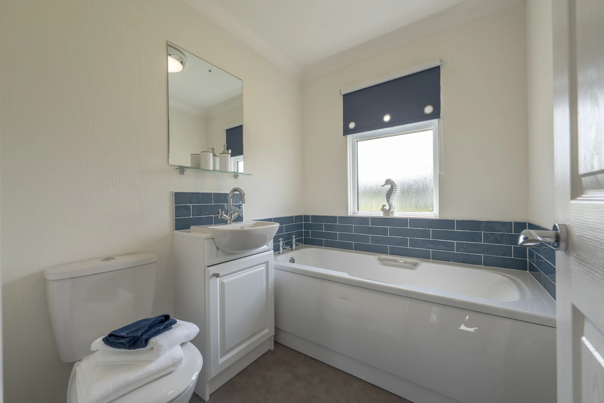 - Family bathroom with bath and vanity storage