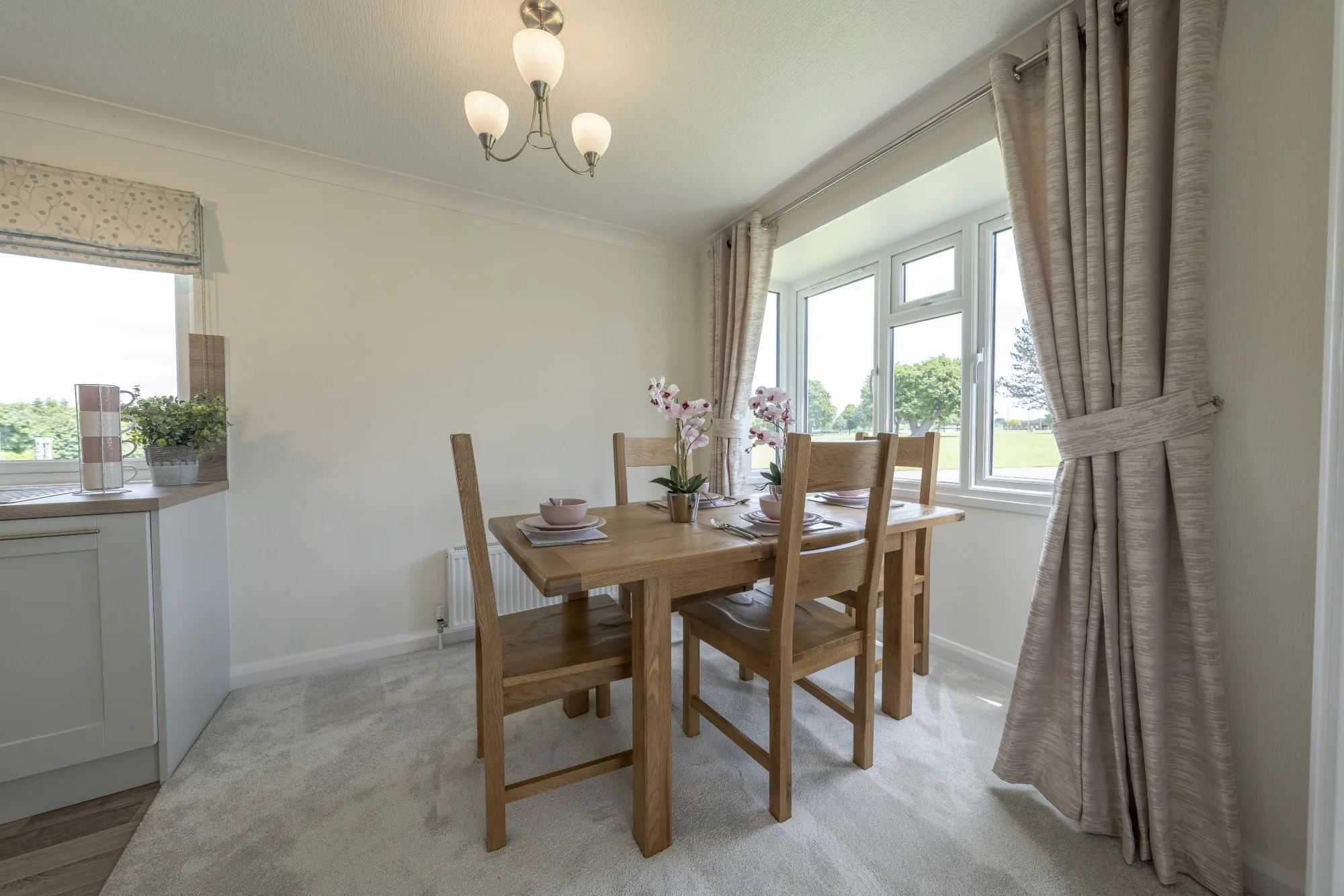 The Goodwood offers the perfect balance of modern design and inviting comfort. Its exterior combines low-maintenance cladding with a render finish, creating a contemporary look that stands out. Architectural details like the clad-infilled gable above the entrance and distinctive bay windows add shape and charm, while large patio doors open the lounge to the garden—ideal for making the most of sunny afternoons and quiet evenings outdoors.